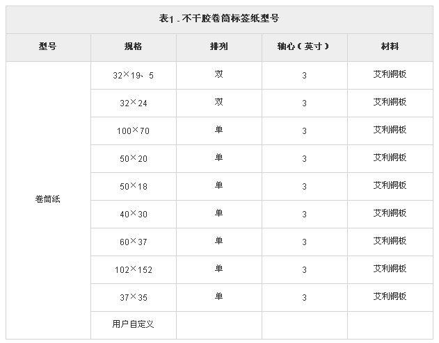 不干胶标签详细型号。 标签打印机及条码扫描枪的销售热线:15122910340。