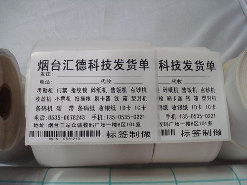 条码标签的制作对于客户来说至关重要,想得到一张质量完美的标签,除了配置高质量的外,合理的标签纸选择也是非常重要的一个环节。目前,条码打印机行业应用较多的是不干胶标签。烟台汇德科技是一家从事现代办公设备的公司,为客户提供专业的现代办公设备,为用户制作各种类型的不干胶条码标签纸,包括:各种不干胶卷筒标签纸以及普通激光打印机的A4规格不干胶打印纸,可以为客户提供不干胶标签打印及印刷服务,并同时提供各类专用碳带。
